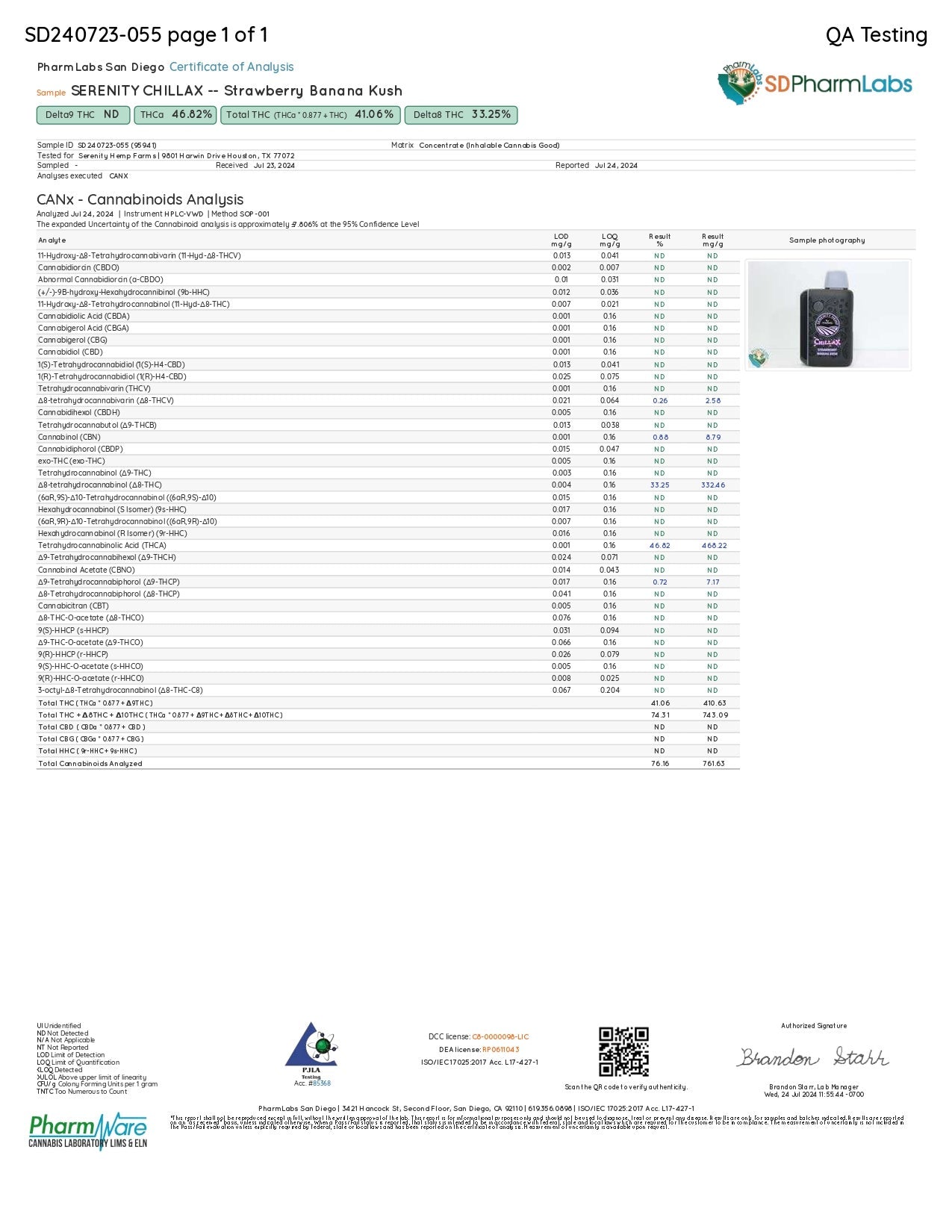 Total THC (THCa* 0.877+ THC) 41.06%