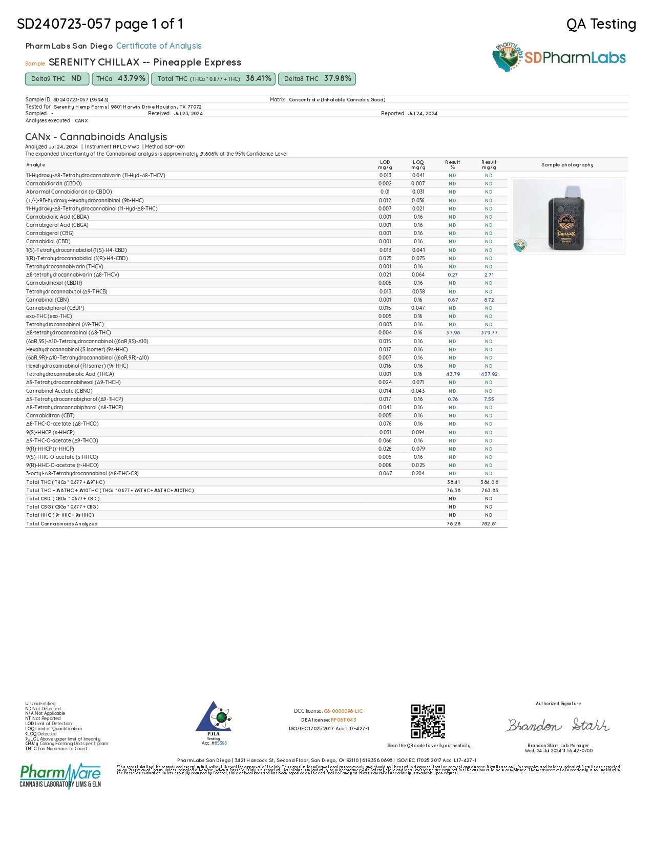 Total THC (THCa 0.877+ THC) 38.41%